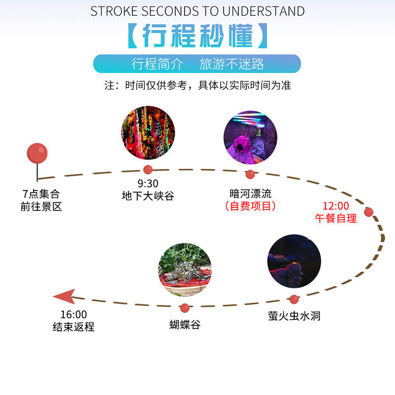 针对差旅人群量身打造的本地微度假产品,不仅包含地下大峡谷探秘、蝴蝶谷漫步,还特别赠送萤火虫水洞游船体验,夜晚乘船穿越梦幻萤光世界,别具浪漫与治愈感。结束后可于温泉酒店放松筋骨,室内外温泉任选,有效缓解旅途疲劳,提升差旅幸福感。