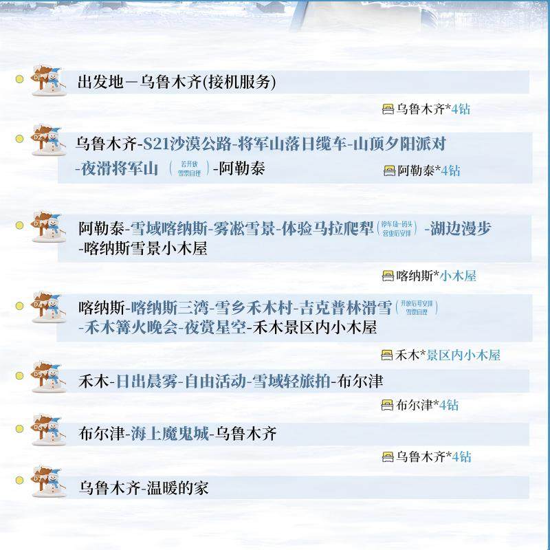 专为独自出差或临时起意度假的旅客设计,支持1人成行,无需拼团等待。对于经常因公外派、行程不确定的职场人士而言,极大提升了出行灵活性。无论是结束项目后的小憩,还是会议间隙的短途逃离,都能即刻启程,享受专属的新疆雪域假期。