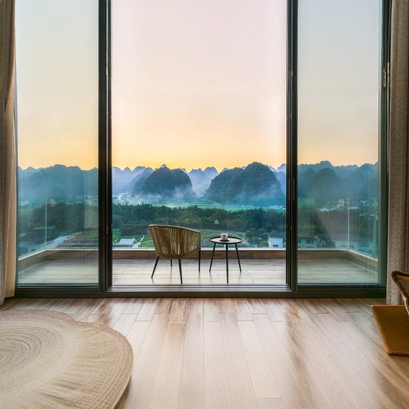 入住悦栖里山及民宿的孑栖观景大床房或栖寻观景双床房,每间客房均配备超大落地窗与独立阳台,推窗即见连绵起伏的喀斯特峰林、金黄麦田与油菜花海。对于差旅人士而言,这里不仅是休憩之所,更是灵感迸发的天然办公空间——清晨在山风中处理邮件,傍晚于阳台复盘当日行程,高效与松弛在此完美融合。房间设计兼顾商务便利与度假美学,是黔西南差旅住宿的理想之选。