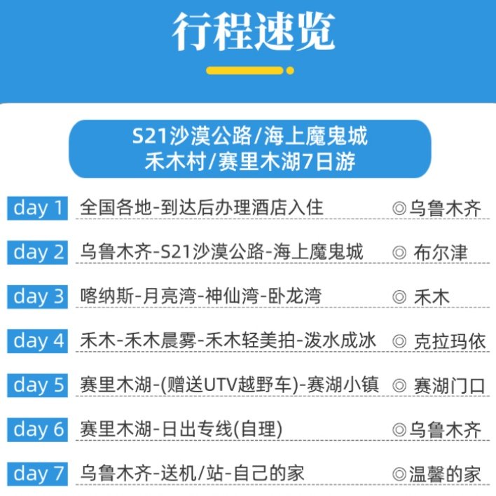 针对时间紧凑的差旅人群,精心规划7日行程,高效串联乌鲁木齐、喀纳斯、赛里木湖、魔鬼城等北疆核心景区。每日路线科学衔接,减少无效交通耗时,确保在有限假期中最大化游览价值。无论是晨起看日出,还是傍晚打卡特色地貌,都能从容安排,兼顾工作与休闲的双重需求。