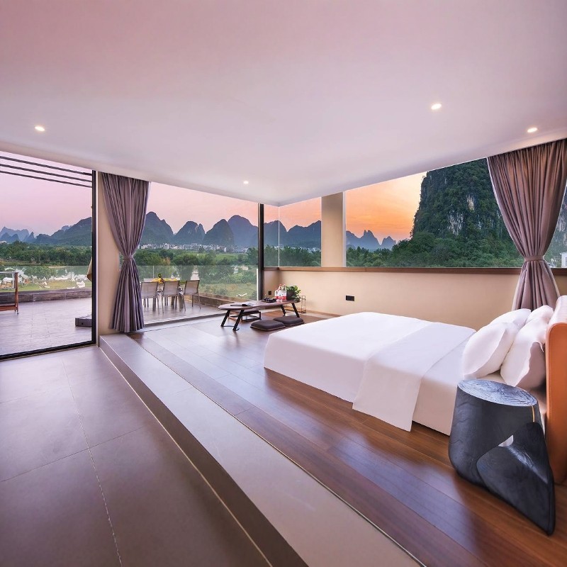 在快节奏的差旅中,入住倡导‘慢品文化’的遇源景舍,让人从都市焦虑中抽离。清晨在河景阳台品茶,午后乘游船漫游漓江,夜晚漫步十里画廊——这种深度融入自然与文化的体验,有效缓解工作压力,助力以更佳状态回归职场。