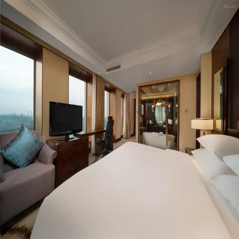 酒店豪华客房配备落地式玻璃窗卫生间,不仅提升空间通透感,更可俯瞰城市天际线,让繁忙的差旅人士在沐浴放松时也能欣赏都市夜景。这种设计巧妙融合私密性与景观视野,有效缓解旅途疲劳,为高强度工作后的身心恢复提供理想环境,是追求品质差旅体验人士的优选。