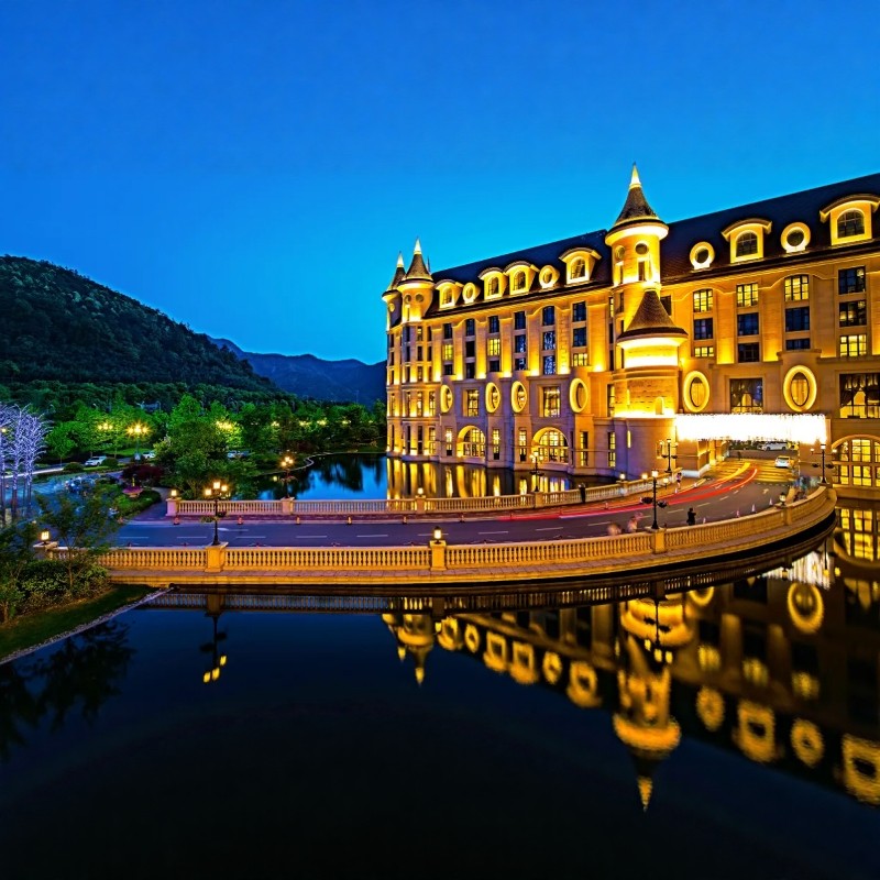 酒店坐落于湖州安吉,被青山绿水环抱,远离城市喧嚣。差旅途中,不仅能享受城堡酒店的奇幻氛围,还能呼吸清新空气,远眺竹海山景。这种自然与人文的结合,为高强度工作的商务人士提供了绝佳的身心修复环境。孩子在乐园玩耍,大人在山野间放松,一次出行同时满足娱乐、休憩与亲子陪伴多重目标,是高效差旅的理想选择。