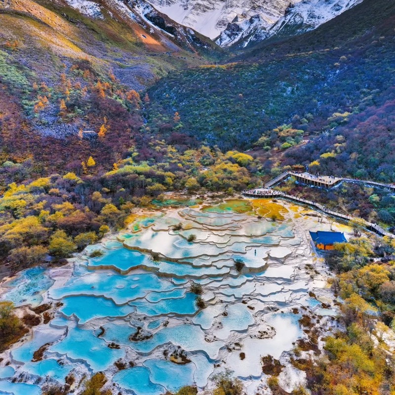面向海南海口与三亚的差旅客户,本产品提供从热带海岛直飞成都的便捷通道,实现‘炎夏到凉秋’的气候跨越。九寨沟秋季彩林与冬季雪景尤为迷人,是海岛居民避暑或避寒的理想目的地。全程含机票与高品质服务,8人小团确保体验感,特别适合在海南完成会展、招商等任务后,立即转入轻松自在的自然度假模式。