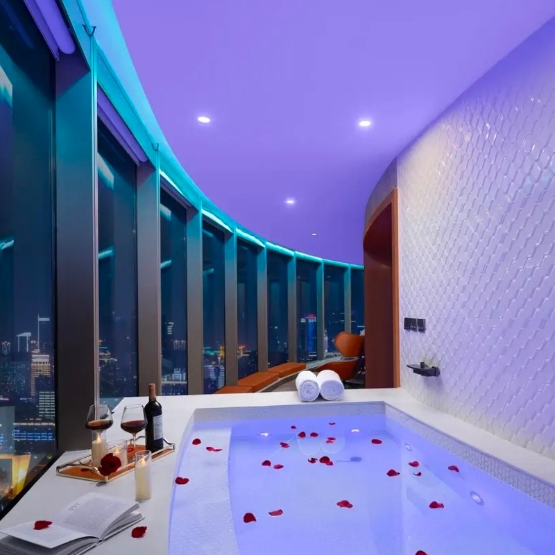 长时间会议与奔波后,如何快速恢复状态?该套餐包含的270°观景高空汤池套房正是为此而设。私密汤池搭配全景落地窗,一边泡汤一边俯瞰贵阳城市夜景或观山湖公园绿意,有效缓解肌肉紧张与精神压力。对注重身心平衡的现代职场人而言,这不仅是住宿,更是高效差旅中的疗愈驿站。