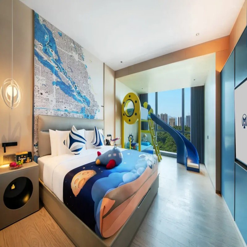 酒店提供飞船亲子滑梯房、上下铺滑梯房、甄选大床/双床房等多种房型,灵活适配不同家庭组合——无论是二胎家庭、祖孙三代,还是单亲带娃出行,都能找到合适选择。滑梯、飞船等设计激发孩子想象力,而独立睡眠区又保障成人休息质量。这种细致的房型规划体现了对差旅家庭多元需求的深度理解,让每一次短途停留都成为舒适、有序且充满欢笑的回忆。