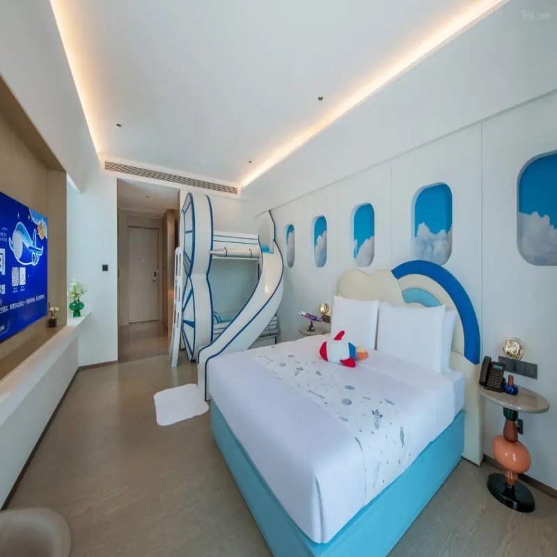 酒店内设8000㎡大型航空科普馆,配备专业模拟飞行设备,让孩子在游玩中学习航空知识、体验飞行员操作。这种“寓教于乐”的设计极大丰富了亲子度假内容,尤其适合希望孩子在假期增长见识的家庭。差旅途中若需兼顾教育与放松,该酒店提供了一站式解决方案——无需远行即可享受高质量互动体验,节省时间又提升旅行价值,是商务家长带娃出行的理想选择。