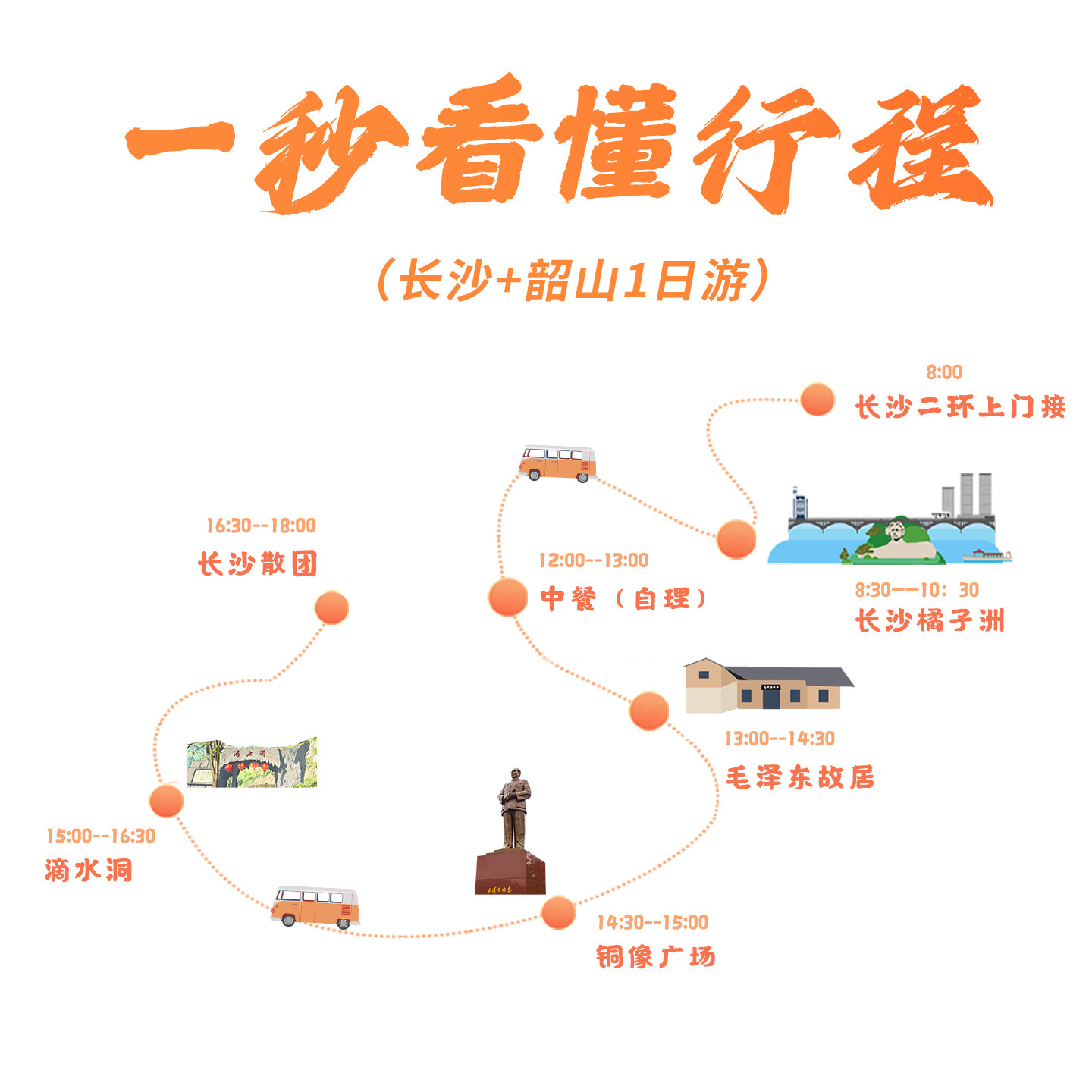 专为商务差旅人士设计,本线路从长沙市区便捷出发,当日往返湘潭韶山,无需额外住宿安排,完美契合紧凑差旅行程。行程涵盖橘子洲头、毛泽东故居、滴水洞等核心红色景点,利用碎片化时间深度体验湖湘红色文化,既满足工作需求,又实现精神充电,是高效差旅与人文度假的理想结合。
