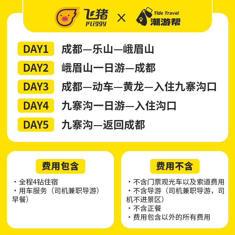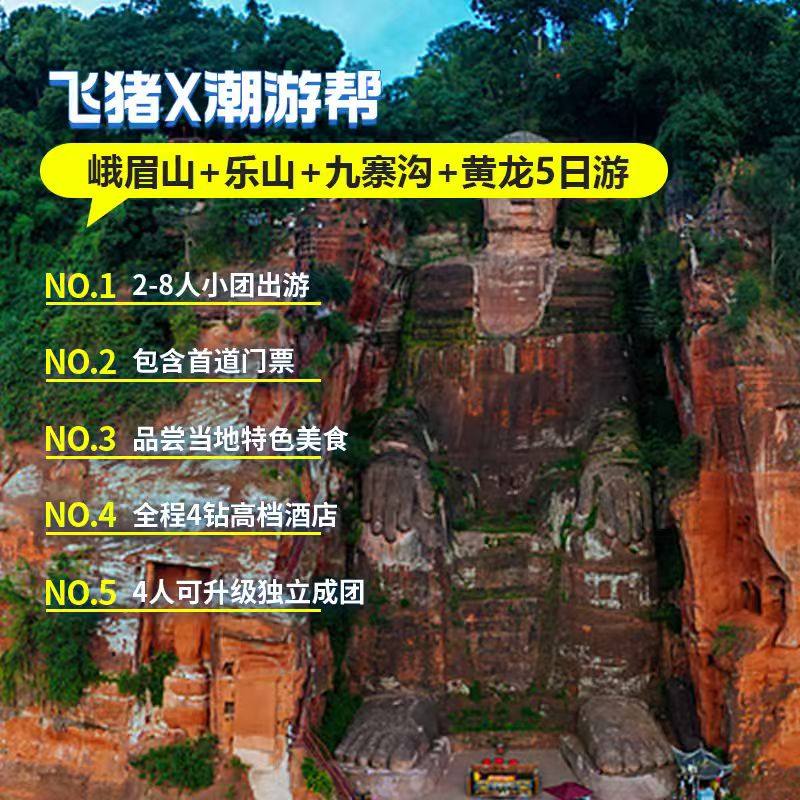 以“世界遗产+自然奇观”为主题串联乐山大佛、峨眉山、九寨沟、黄龙四大IP,5天内高效覆盖四川精华景点。专为差旅间隙设计的紧凑动线,避免绕路与重复折返,确保有限假期获得最大化的视觉震撼与心灵满足,提升差旅附加价值。