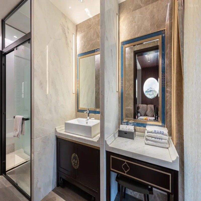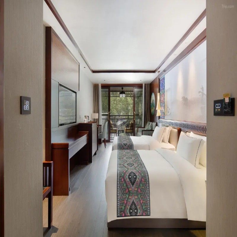 酒店客房拥有江河景观视野,清晨可眺望薄雾缭绕的太平河,傍晚则沉浸于梵净山原始森林的静谧之中。对差旅人士而言,优质的视觉环境能显著改善睡眠质量与心理状态,帮助快速恢复精力。在紧凑的日程安排中,仅需推开窗即可享受自然疗愈,无需额外耗时前往景点,最大化利用碎片化休息时间,提升整体差旅效率。