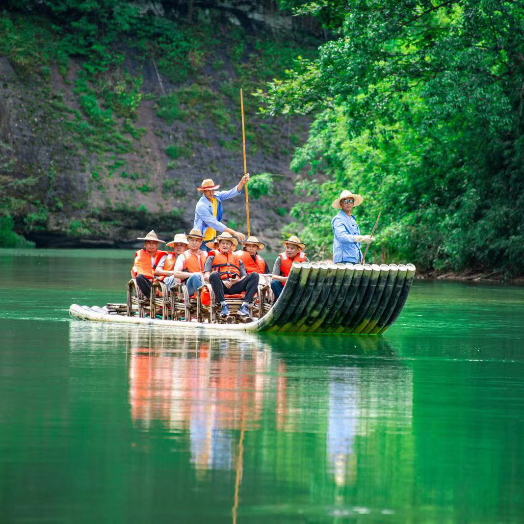 在繁忙差旅间隙,乘坐九曲溪竹筏顺流而下,是武夷山不可错过的沉浸式体验。清澈溪水蜿蜒于丹霞峰林之间,船夫悠扬山歌伴随左右,让您暂时忘却KPI与会议。这段约90分钟的漂流不仅被列入世界遗产核心游览项目,更是身心深度放松的绝佳方式,助您以更饱满状态回归工作。
