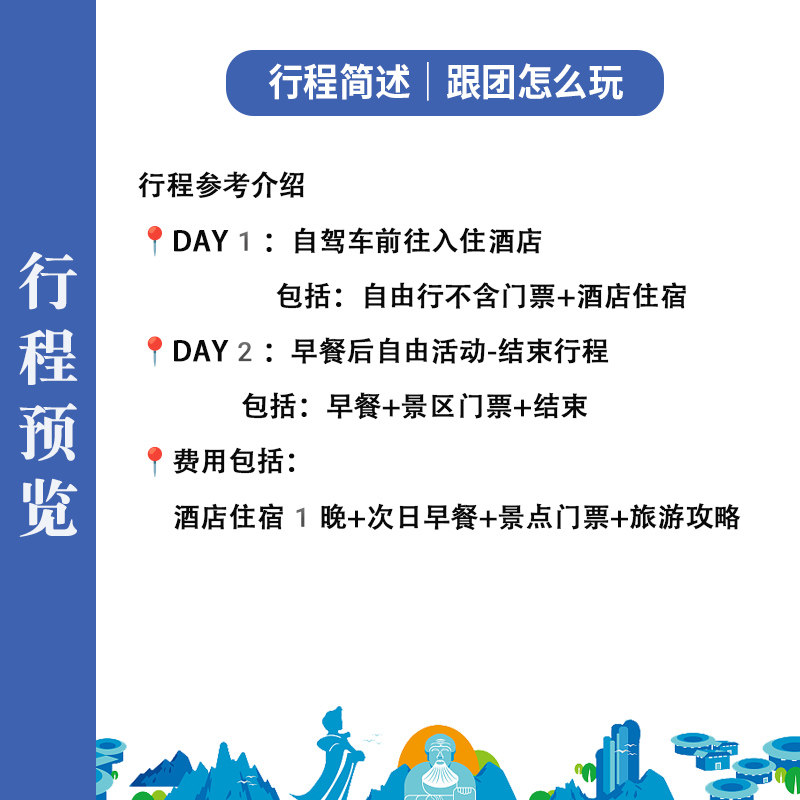 产品包含1晚精选酒店住宿、次日早餐及核心景区门票,差旅人士只需自驾抵达,其余琐事均由我们安排妥当。无需额外比价订房、排队购票,节省宝贵时间。尤其适合周末或短假期出行的职场人,在完成工作后无缝切换至度假模式,最大化利用有限假期。