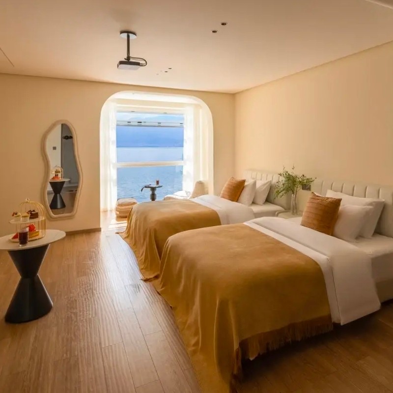 亲水海景双床房不仅视野开阔,更配备符合人体工学的办公区域,搭配稳定网络与充足电源接口,轻松搭建临时办公室。清晨在洱海波光中开启一天工作,午后于露台小憩激发创意,夜晚伴星河复盘当日成果。这种沉浸式办公环境,打破传统差旅住宿的局限,重新定义高效与舒适的平衡点。