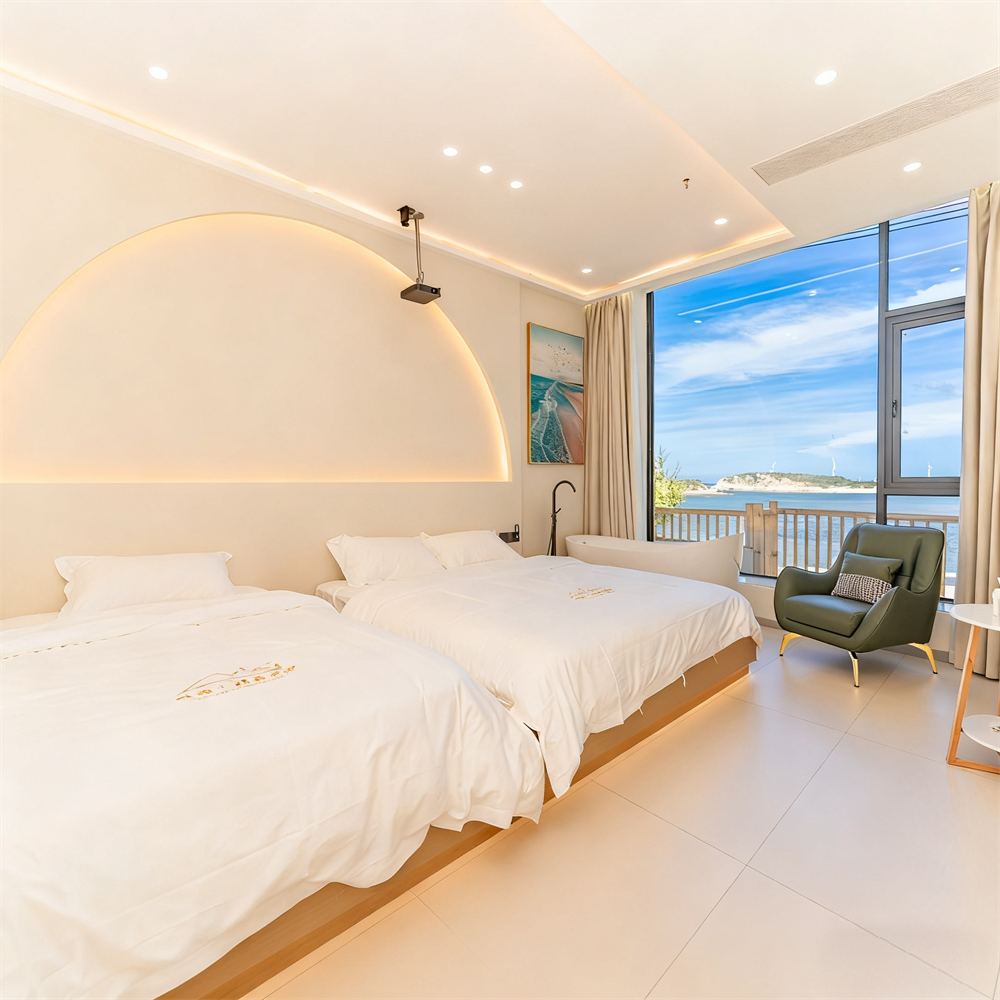 现代差旅常伴随家庭同行,本产品特设“问海·亲子海景房”,配备1.8米+1.2米双床布局,40㎡空间宽敞舒适,兼顾成人休憩与儿童安全。露台观海、深泡浴缸与智能设备提升全家体验,让带娃出差不再狼狈,真正实现“工作+陪伴”两不误的差旅新方式。