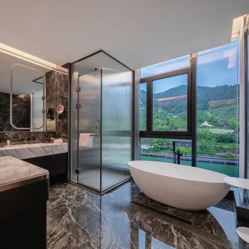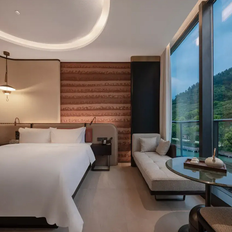 酒店提供豪华湖景房与山景房两种选择,湖景房开阔宁静,适合高层会谈后的私密交流;山景房依竹而建,更具隐逸氛围,适合个人静思或小型团队头脑风暴。无论哪种选择,都能为您的差旅增添一份独特格调与舒适体验。