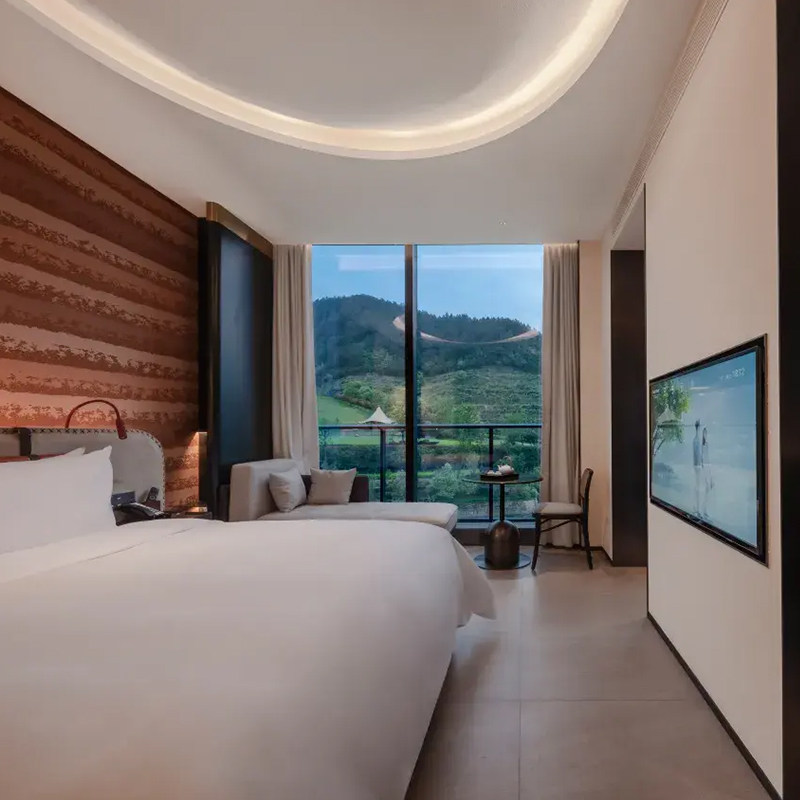 酒店坐拥万亩青翠茶园,植被覆盖率高达95%,空气中负氧离子含量远超城市水平,为差旅人士提供一处天然“绿色办公室”。在这里,您可在竹海环抱中处理邮件,在泉水叮咚声里召开远程会议,呼吸之间尽是清新,有效缓解高强度工作带来的焦虑与疲劳,实现高效与健康的平衡。