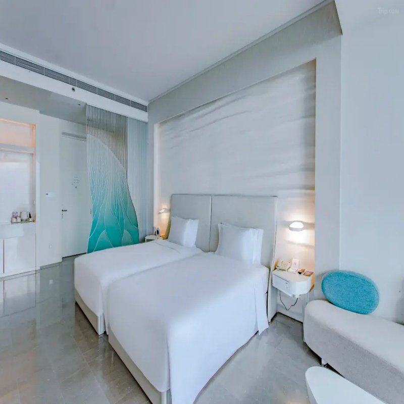 海棠湾红树林度假酒店由英国著名设计公司阿特金斯操刀整体概念,主楼以帆船为灵感,呈现华丽优雅的流线造型,并融合内外光影秀,营造出极具未来感的视觉体验。大堂与客房艺术走廊由捷克知名设计师米兰·西派克亲自设计,搭配西班牙VONDOM品牌家具,将国际前沿艺术与舒适住宿完美结合。对注重审美与品质的差旅人士而言,这里不仅是休憩之所,更是沉浸式艺术之旅的起点。