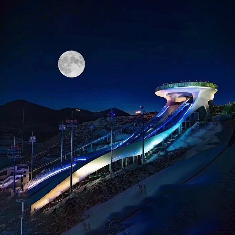 毗邻越野滑雪中心、冬季两项中心,且与跳台滑雪中心(雪如意)咫尺呼应