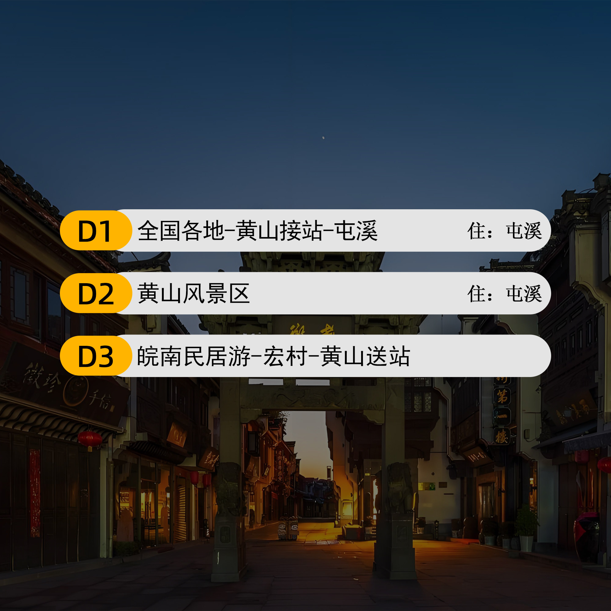 行程以黄山为始发地和目的地,形成闭环路线,极大方便本地出差人员或周边城市通勤者。无需额外奔波中转,节省交通衔接时间,让有限的假期最大化用于深度体验。对于在安徽地区有业务往来的职场人士而言,结束工作后直接开启山水之旅,无缝切换状态,提升差旅效率与体验感。