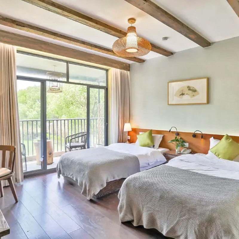 乌里花园酒店以‘文艺清新风’为基调,将白墙黛瓦、木格窗棂与现代简约家具巧妙融合,既保留古镇韵味,又配备符合商务需求的舒适床品与静音环境。差旅人士在此不仅能获得高质量睡眠,更能于茶歇或晚间放松时感受空间美学带来的精神疗愈。