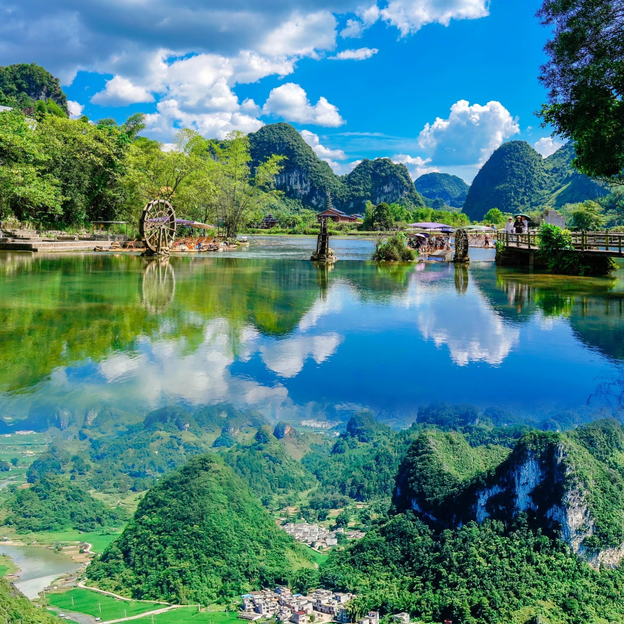 中国西南三大名泉之一,千年不涸,水清如镜,倒影桂林式峰林田园