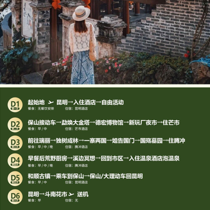 【2-12人小包团】0购物0自费!昆明腾冲瑞丽芒市6天双动车云南旅游 - 定制游预订