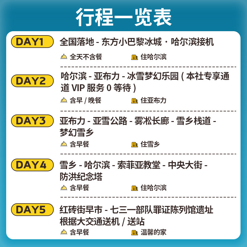 本线路支持1人独立成团预订,特别适合出差途中顺道度假或独自出行的商务人士。无需等待拼团,随时出发,节省宝贵时间。行程紧凑合理,兼顾哈尔滨市区文化体验与亚布力滑雪、雪乡自然风光,让差旅不再枯燥,高效完成工作之余也能沉浸于北国冰雪奇境,实现工作与休闲的完美平衡。