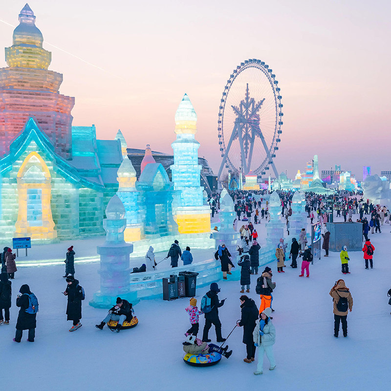 行程包含冰雪大世界夜场深度游览,避开日间人流高峰,独享晶莹剔透的冰雕艺术与璀璨灯光秀。对差旅人士而言,这不仅是视觉放松,更是高效获取高质量社交内容的绝佳机会。园区内专业摄影点位与充足游览时间,确保您能轻松拍出大片级影像,为个人或企业社交媒体运营提供优质素材,让差旅成果延伸至工作之外。
