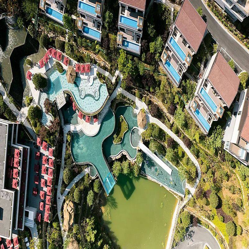 度假村温泉中心汲取日式汤屋精髓,结合本地天然热泉资源,打造兼具仪式感与疗愈力的泡汤体验。温泉水温适宜、水质清澈,设有室内外多种泡池,包括私密家庭池与开阔观景池。差旅人士可在夜幕降临时沉浸其中,卸下西装革履,让温热泉水抚平焦虑,重拾内心平静——这不仅是身体的放松,更是精神层面的高效复原。