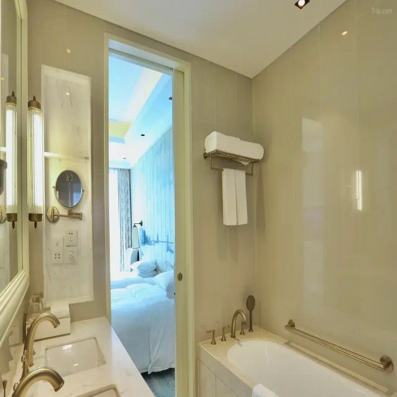 从酒店步行可达摩天轮、购物中心与高校区,满足差旅中的多元场景需求:晨间可在滨海步道慢跑保持状态,午间于海信广场高效解决午餐,傍晚登摩天轮俯瞰城市全景调节节奏。这种‘工作-生活’动线的高度融合,让短期出差也能拥有度假般的舒适感。