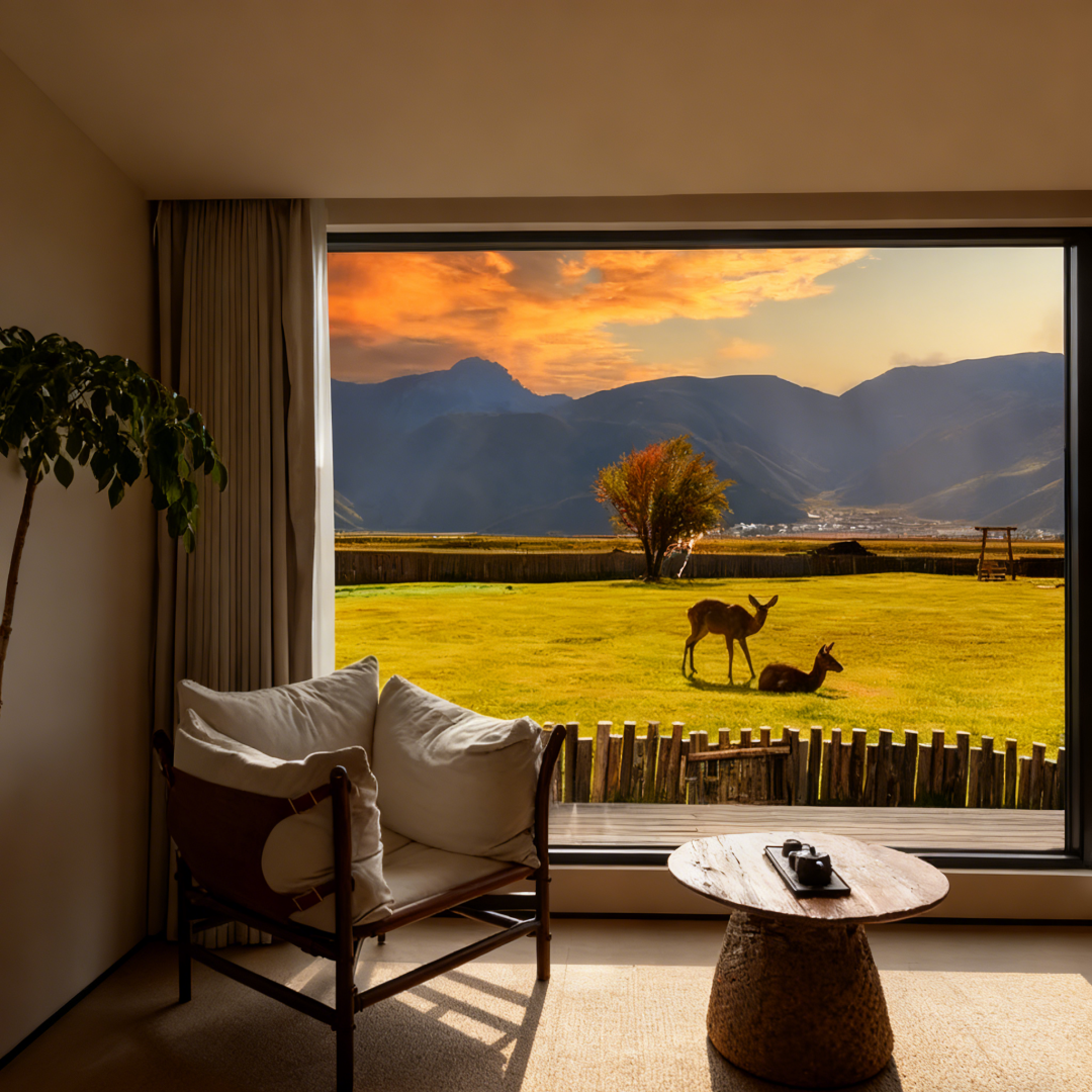 特别安排泸沽湖畔高端景观客房,推窗即见湛蓝湖水与摩梭村落。对于结束高强度会议或谈判的差旅人士,湖光山色成为绝佳减压背景。房间配备静音设施与高速网络,兼顾远程办公需求与休闲放松,真正实现‘移动办公+度假’的平衡。