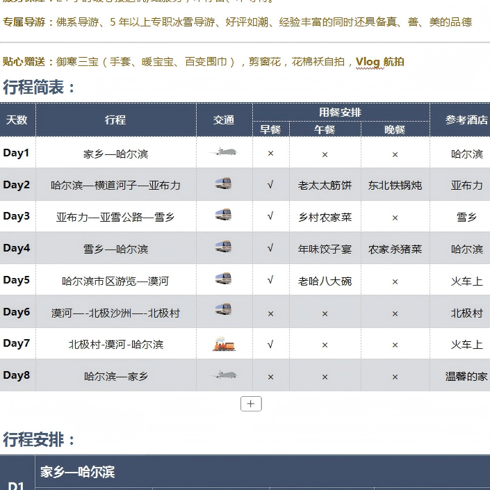 针对年假有限的职场人士,本产品精心压缩8天时间,高效串联哈尔滨、雪乡、漠河、北极村四大核心目的地。从中央大街的俄式风情到雪乡的童话雪屋,再到中国最北端的极光观测点,每一站都经过时间优化,避免无效等待。特别适合从北京、上海等地出发的用户,在有限假期中最大化体验东北冬季魅力。