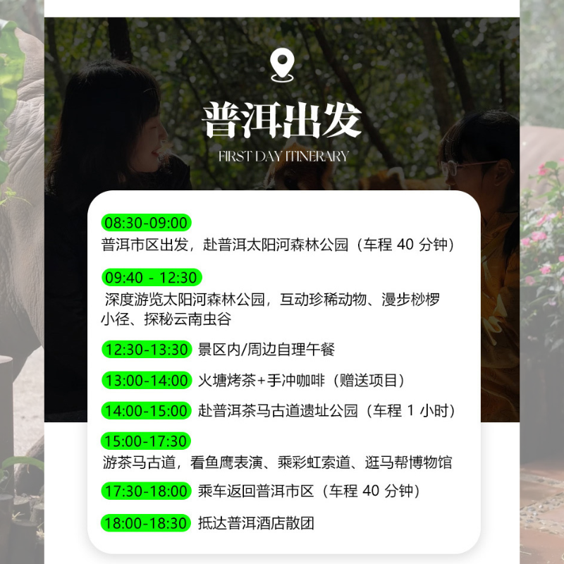 针对商务差旅或短途度假需求,本线路提供“一单一团独立用车”服务,全程专属车辆与司机,避免拼团等待和路线绕行,极大提升出行效率。无论是从普洱市区出发还是返回,均可按需定制上下车点,节省宝贵时间。特别适合出差途中抽空放松、情侣结伴或家庭小聚的游客,在紧凑日程中享受高品质、私密性强的一日游体验。