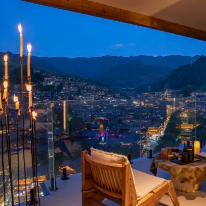 贵州鸾喜·云舍人文酒店坐落于黔东南苗寨核心观景台位置,为差旅人士打造独一无二的沉浸式观景体验。无论是商务出行后的放松,还是短暂逃离城市喧嚣,这里都能让您在房间内俯瞰万家灯火,感受苗岭夜色的静谧与壮美。酒店所有客房均配备独立阳台,确保每位宾客足不出户即可饱览山川美景,是兼顾效率与享受的理想差旅落脚点。