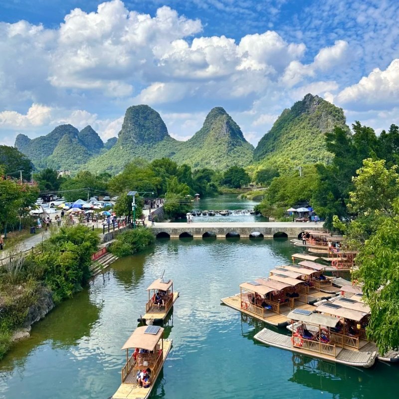 兴坪漓江游船与遇龙河竹筏漂流,让差旅人士在喀斯特山水画卷中彻底放松身心。碧水青山、稻浪蛙鸣的自然环境被证实能有效降低压力激素水平,提升专注力。短短50分钟至1小时的水上行程,即可完成一次高效的“精神充电”,为返程后的高强度工作储备能量,实现真正的可持续差旅。