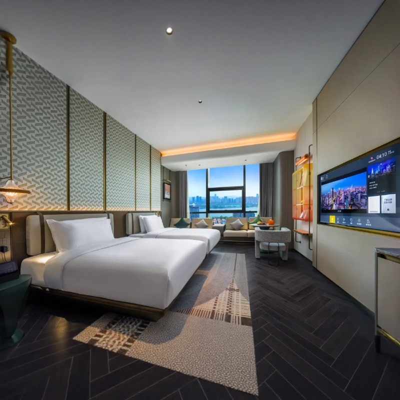 每间江景房均配备全景落地窗,将长沙的城市天际线与蜿蜒湘江纳入室内视野。晨起一杯咖啡,看江面薄雾散去;夜晚结束会议,赏橘子洲焰火(季节性)点亮夜空。这种沉浸式的景观体验,不仅提升住宿品质,更在高强度差旅中提供一处疗愈心灵的观景台,让疲惫一扫而空。