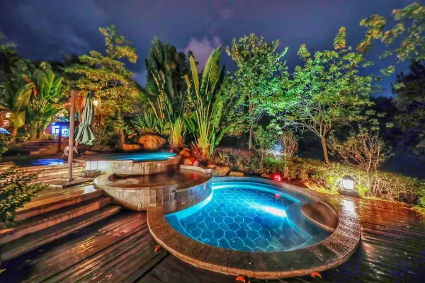 【宿】晨起泡着温泉看朝雾缭绕林间,入夜伴着星空在氤氲水汽中小酌畅谈