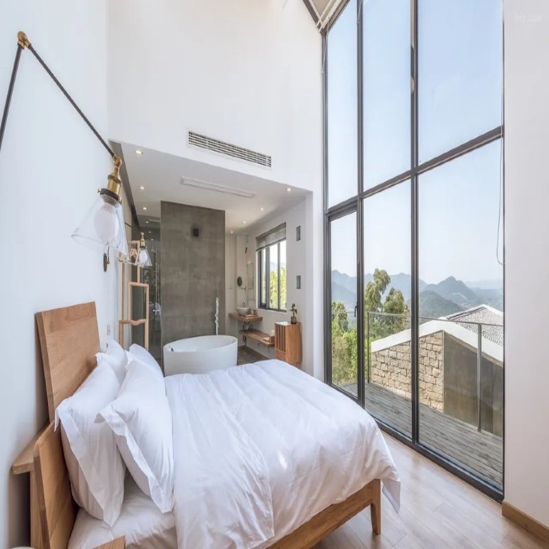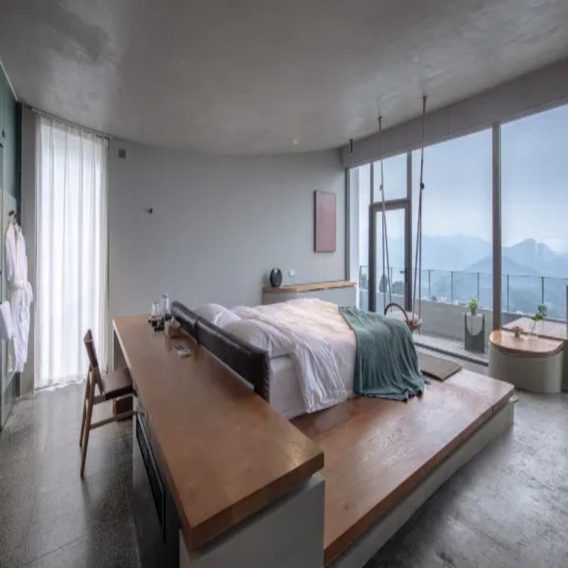 所有房型均配备大面积落地窗,将千山叠翠与村落烟火尽收眼底。对于依赖创意或需长时间专注的差旅者而言,窗外流动的自然光影不仅美化工作环境,更能激发思维活力。清晨伴山色享用双人早餐,午后在窗边处理文件,夜晚观星入眠——高效与诗意在此无缝交融。