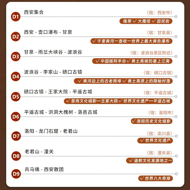 • 差旅优势:9日深度串联晋陕豫三省核心文化地标