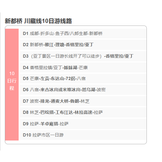 差旅友好型行程:10日环线覆盖川藏精华景点