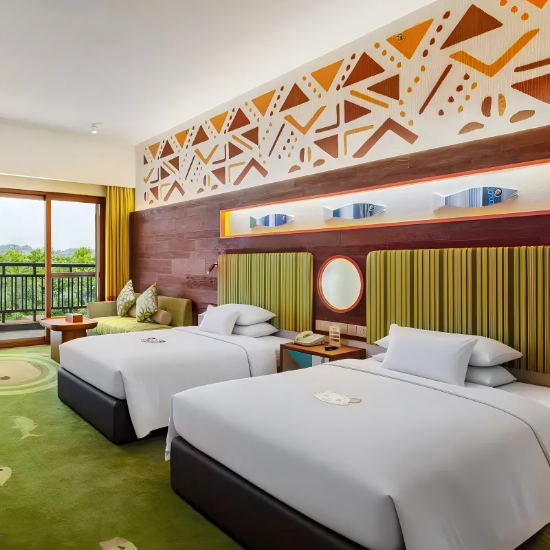 广州长隆酒店本身就是沉浸式主题乐园的一部分,入住即享卡通主题环境与亲子友好设施。从住宿到游玩无缝衔接,免去交通换乘烦恼,特别适合差旅时间紧张的家庭。孩子在熟悉有趣的环境中更快适应,家长也能高效完成行程规划。