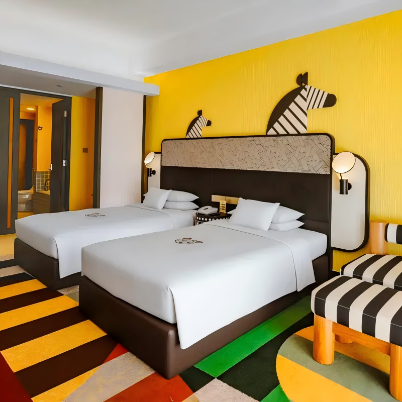 酒店提供多种家庭房及卡通主题房型,空间宽敞、设施齐全,充分考虑儿童安全与趣味需求。差旅途中不必担心住宿不适,孩子可在专属主题空间中安心入睡,家长也能获得良好休息,为第二天的高效游玩或返程工作储备精力。
