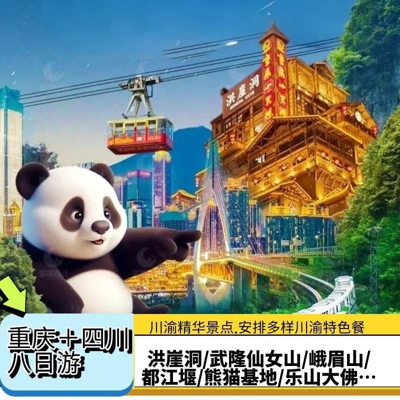 差旅特色本行程专为商务差旅人士设计,从重庆主城便捷出发,9天8晚高效串联乐山、成都等核心城市,涵盖洪崖洞、大足石刻、峨眉山、熊猫基地等标志性目的地。行程节奏张弛有度,既满足工作间隙的休闲需求,又避免舟车劳顿,让差旅与度假无缝衔接,真正实现‘出差即度假’的高效旅行体验。