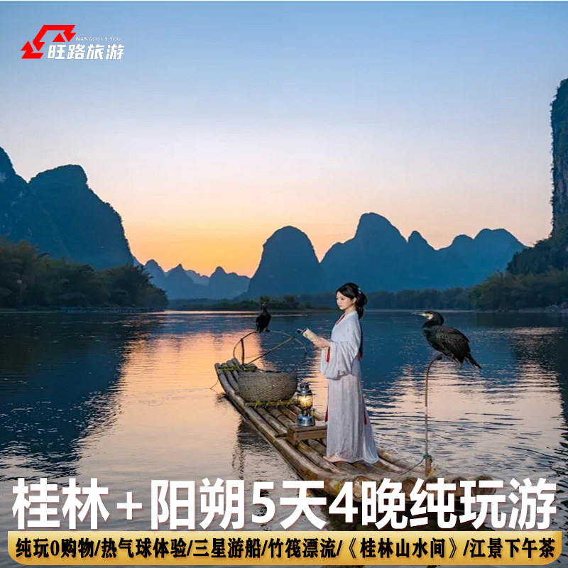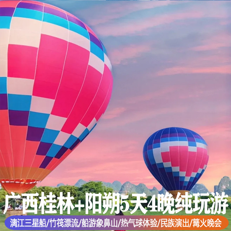 广西桂林阳朔旅游纯玩5天4晚 | 漓江三星船热气球体验竹筏漂流 - 定制游预订