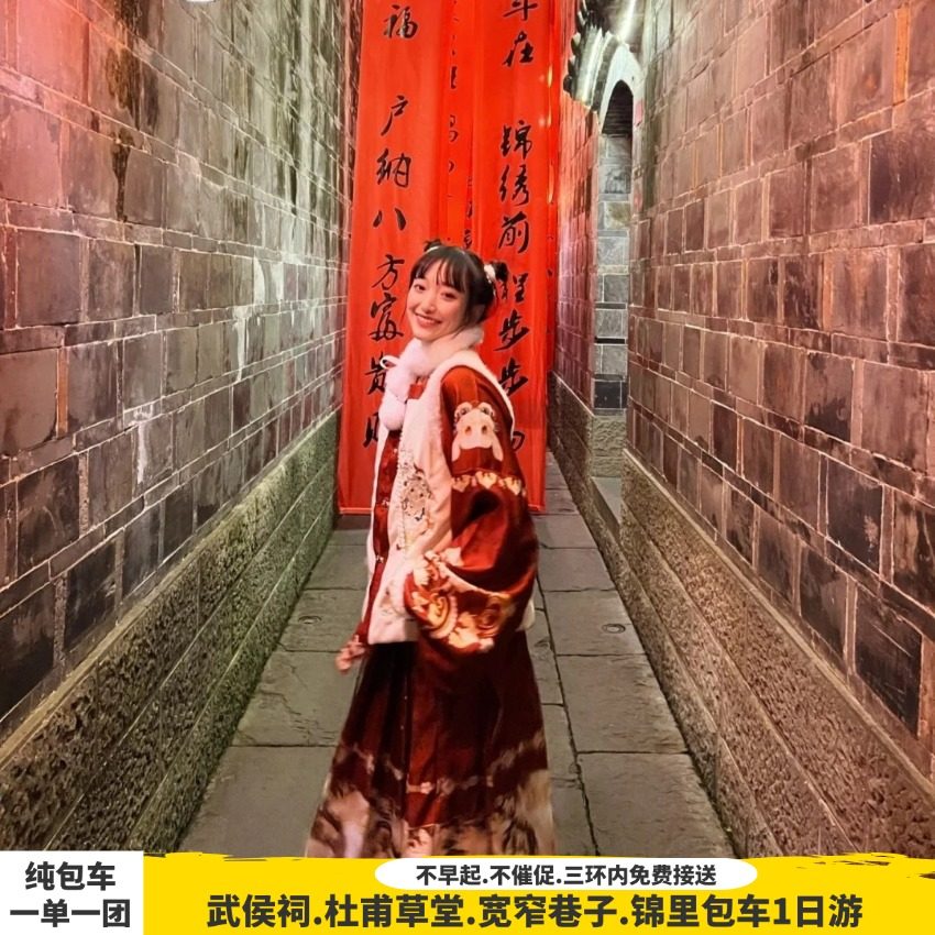 差旅特色专为差旅人士及家庭设计的成都本地包车游产品,涵盖武侯祠、杜甫草堂、锦里、宽窄巷子等经典文化地标,一单一团私密出行,兼顾商务差旅的高效与亲子研学的趣味。更值得一提的是,本产品提供极具弹性的取消政策:行程开始前1日中午12点前取消可享0%违约金,充分应对差旅中常见的临时变动,让您的行程安排更加从容不迫。