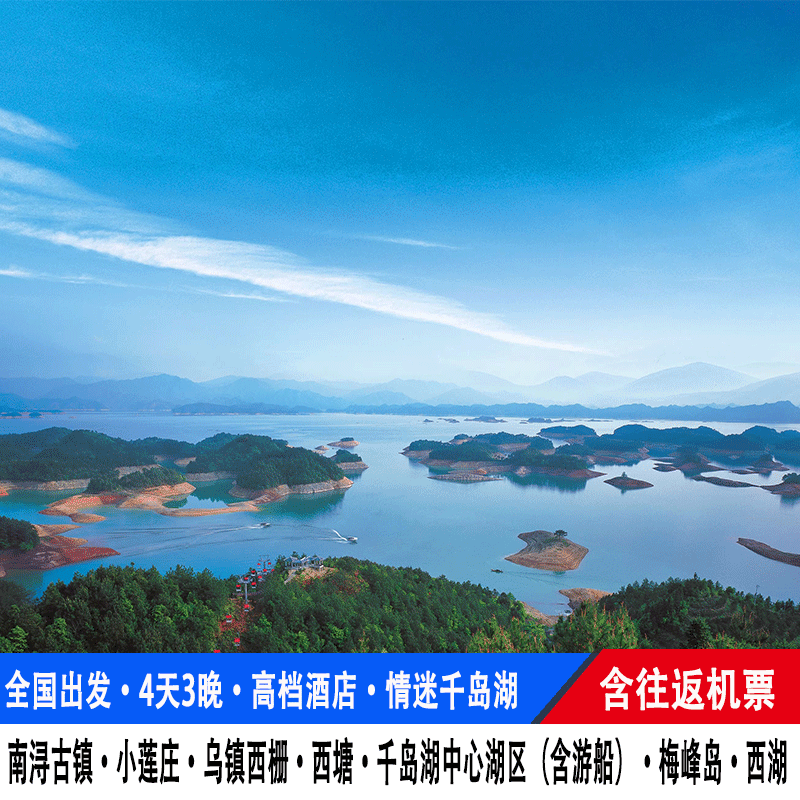 差旅特色从北京出发的商务人士可选择周末或短假期无缝衔接本行程,航班密集、航程仅2小时左右,极大节省时间成本。抵达杭州后即开启4天3晚深度游,涵盖千岛湖梅峰岛、西湖、乌镇、西塘等经典目的地,既满足差旅高效出行需求,又兼顾江南水乡的慢节奏疗愈体验,是都市精英平衡工作与休闲的理想之选。
