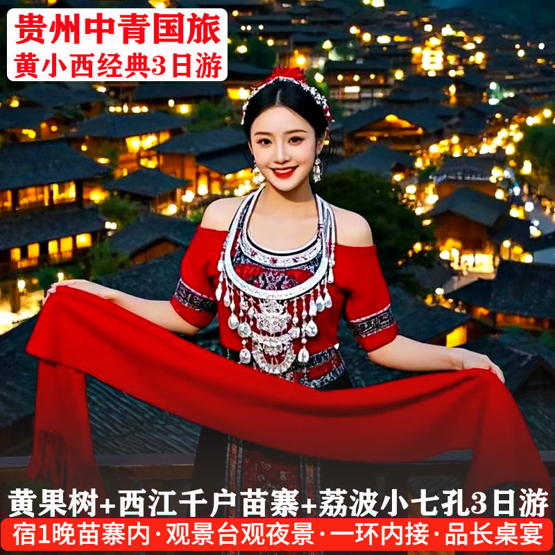 差旅特色本行程专为商务差旅人士设计,从贵阳出发,3天2晚紧凑安排黄果树瀑布、荔波小七孔、西江千户苗寨等贵州核心景点,路线科学高效,节省通勤时间。全程纯玩无购物,确保您在短暂假期中既能放松身心,又能深度体验贵州自然与人文魅力,是出差之余理想的一站式度假选择。