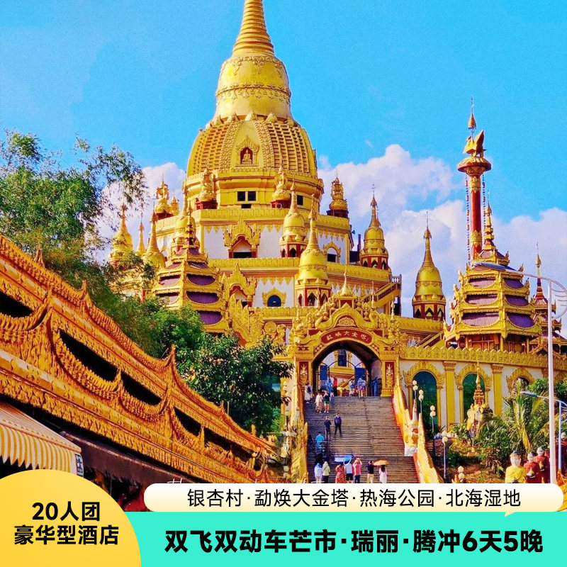 20人团昆明芒市瑞丽腾冲6天5晚勐焕大金塔热海公园北海湿地银杏村 - 定制游预订