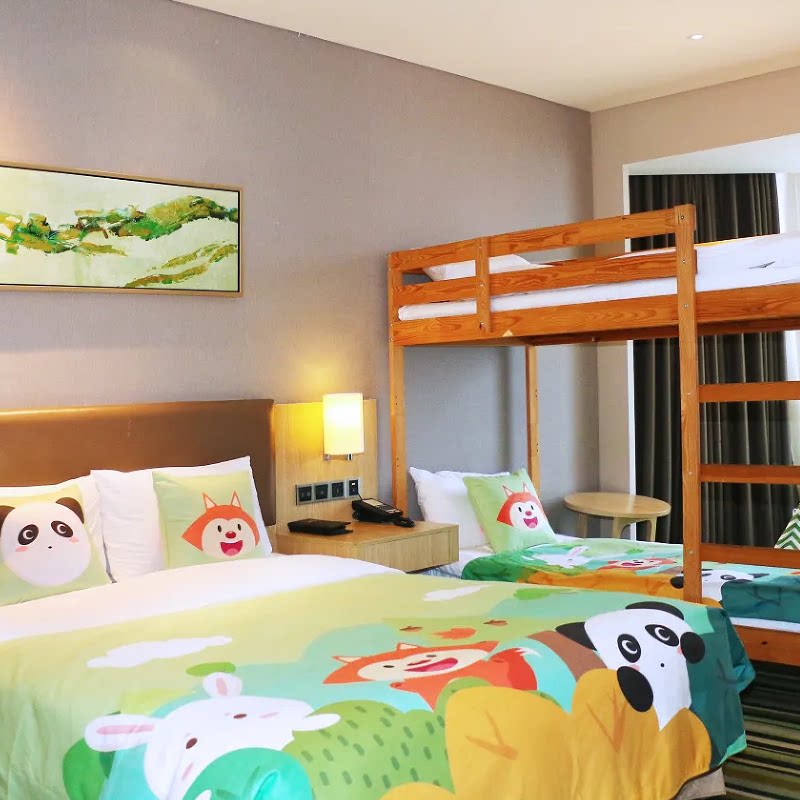 差旅特色南昌九龙湖融创美居酒店专为家庭出行设计,提供动物奇遇主题亲子四人间,配备1张双人床及1张上下铺,满足两大两小的舒适住宿需求。房间布置充满童趣,细节贴心,让孩子在旅途中也能拥有安心睡眠。酒店位于文旅城核心区域,步行即可抵达各大娱乐设施,是兼顾商务与亲子度假的理想下榻之选,让差旅中的家庭时光更温馨、更高效。