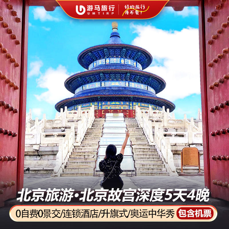 差旅特色针对来自台州的商务人士或出差旅客,本行程提供一价全含服务,包含往返机票与全程住宿,极大简化差旅安排。抵达北京后即可无缝衔接游览故宫、长城、天坛等世界文化遗产,兼顾工作与休闲。5天4晚的紧凑设计,既满足高效出行需求,又能让您在繁忙公务之余沉浸于千年古都的历史氛围中,实现真正的“差旅+度假”融合体验。